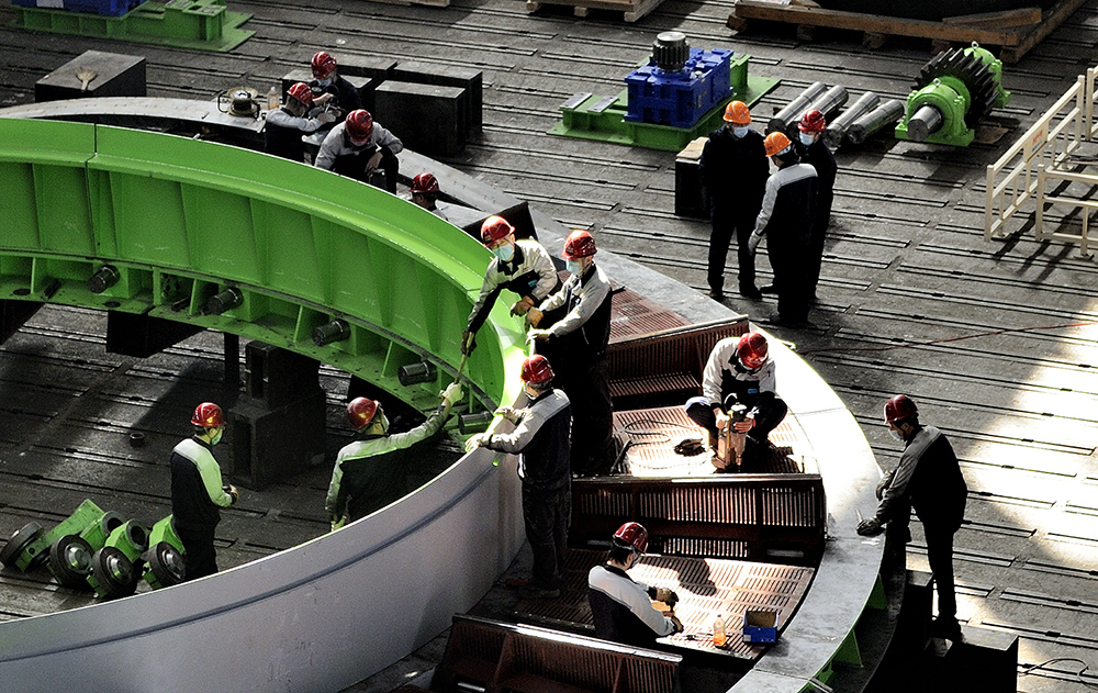 北方重工裝配車間環(huán)冷機裝配現(xiàn)場。(資料片)